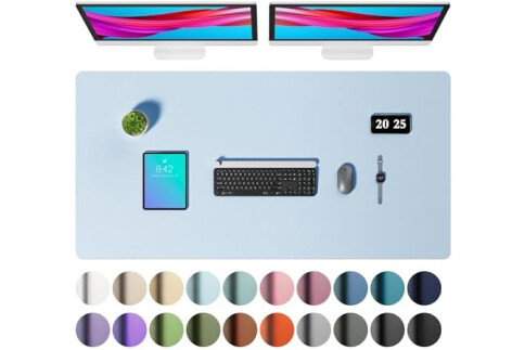 Aothia Faux Leather Desk Mat – Large Mouse Pad, Non-Slip PU Leather Blotter, Waterproof Writing Surface for Office and Home (Baby Blue, 47.2" x 23.6")