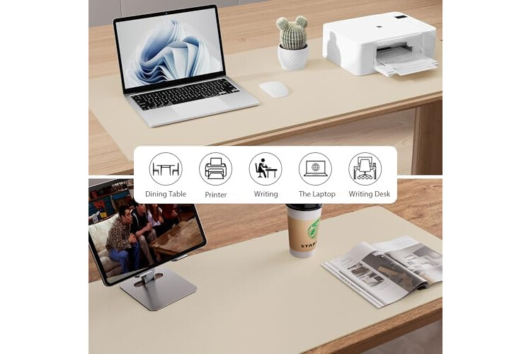 DESK PROTECTOR: Made of durable PU leather material, which protects your desk from scratches, stains, spills, heat and scuffs. It also gives your office a modern and professional atmosphere when you put it on your desktop. Its smooth surface will make you enjoy writing, typing and browsing. It is perfect for both office and home
