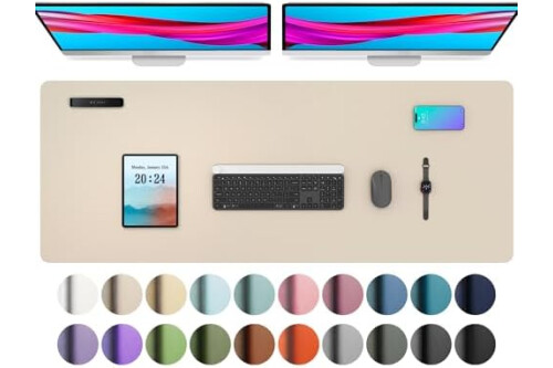 Aothia Leather Desk Pad Protector, Office Desk Mat, Large Mouse Pad, Non-Slip PU Leather Desk Blotter, Laptop Desk Pad, Waterproof Desk Writing Pad for Office and Home (48"x17", Beige)