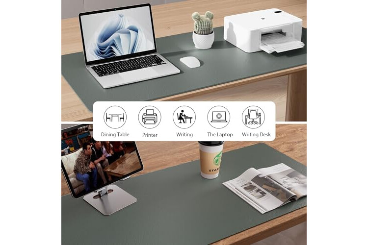 DESK PROTECTOR: Made of durable PU leather material, which protects your desk from scratches, stains, spills, heat and scuffs. It also gives your office a modern and professional atmosphere when you put it on your desktop. Its smooth surface will make you enjoy writing, typing and browsing. It is perfect for both office and home.