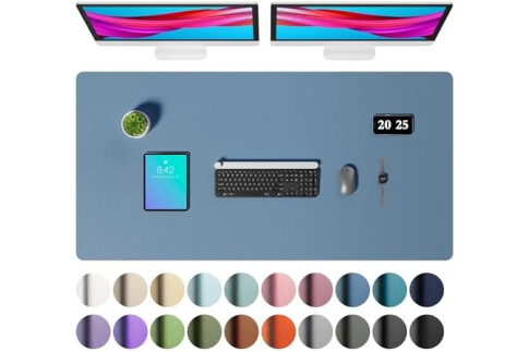 Aothia Faux Leather Desk Mat – Large Mouse Pad, Non-Slip PU Leather Blotter, Waterproof Writing Surface for Office and Home (Denim Blue, 47.2" x 23.6")