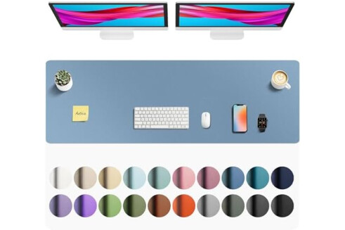 Aothia Faux Leather Desk Mat - Non-Slip PU Leather Desk Blotter, Waterproof Writing Surface, Large Desk Pad for Office & Home (Denim Blue, 55" x 17")