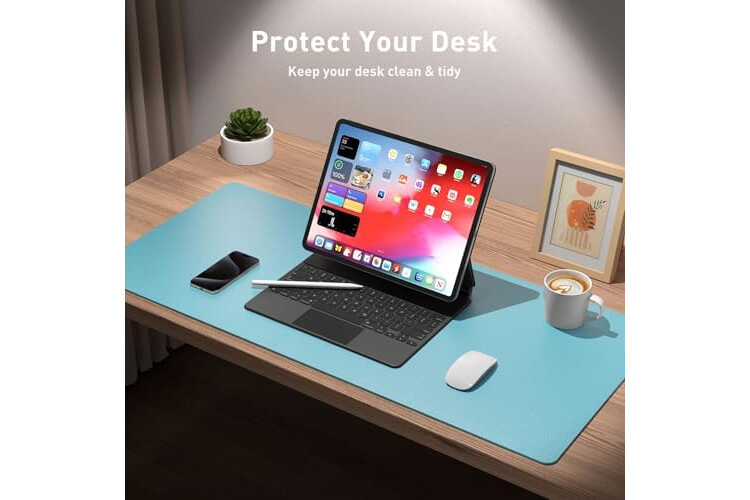 Aothia Large PU Leather Desk Pad Protector – Non-Slip Mouse Pad & Writing Mat for Office/Home, Waterproof, Easy to Clean (48" x 17", Blue Topaz)