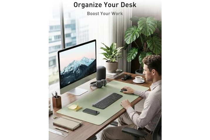 Aothia Faux Leather Desk Mat - Non-Slip PU Leather Desk Blotter, Waterproof Writing Surface, Large Desk Pad for Office & Home (Grass Green, 55" x 17")