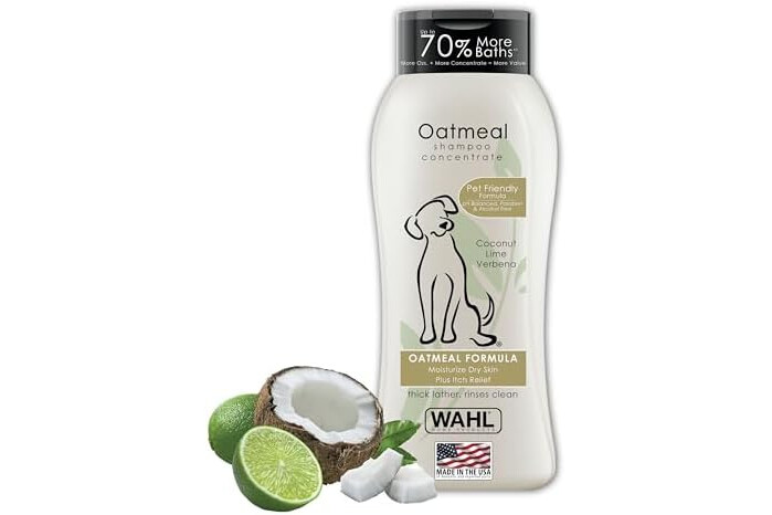 Our shampoos are concentrated, which means a little bit goes a long way! Be sure to thoroughly rinse your dog after shampooing to leave no residual shampoo behind. In addition, it’s important to always comb out and dry your pet's coat; leaving your dog with damp fur for hours can lead to potentional risk for dogs with sensitive skin. Wahl’s Oatmeal formula shampoo contains a coconut lime verbena scent the keeps your pet smelling great! Our shampoo helps gently cleanse, moisturize, & protect your puppy’s delicate skin by providing itch relief. The rich lather helps clean dirty coats and other environmental residue. Since our shampoo easily cleans, it leaves your dog’s coat looking clean, silky, and smooth. Our plant derived ingredients make our shampoo the choice for owners who want to avoid harsh chemicals for their dog and themselves. Our shampoo is PEG-80 free, alcohol free, paraben free, and pH balanced. Our 24 oz size and concentrated formula allows for up to 70% more baths than other leading brands. While there are no harmful chemicals in our pet products, some pets are sensitive to certain plant oils used in our products. Wahl strongly recommends talking to your vet and doing a small spot test on your pet at least 24 hours before using any new product. Wahl has been serving professional vets and groomers for over 50 years. As a company of animal lovers, we believe your pet deserves the very best.