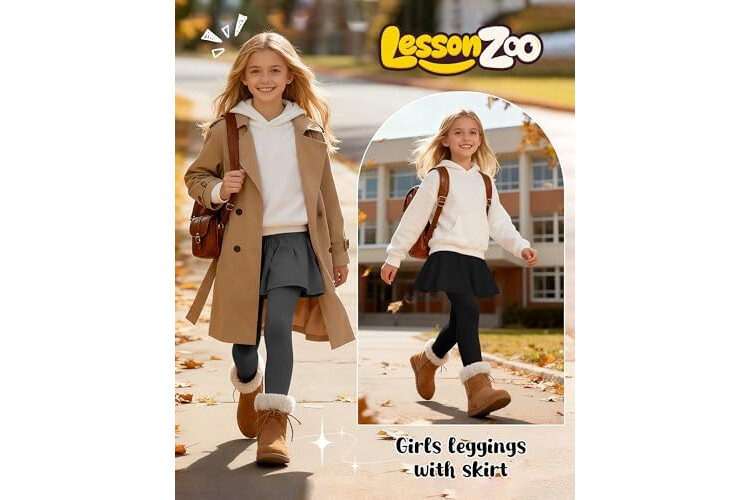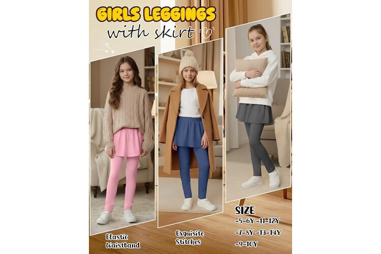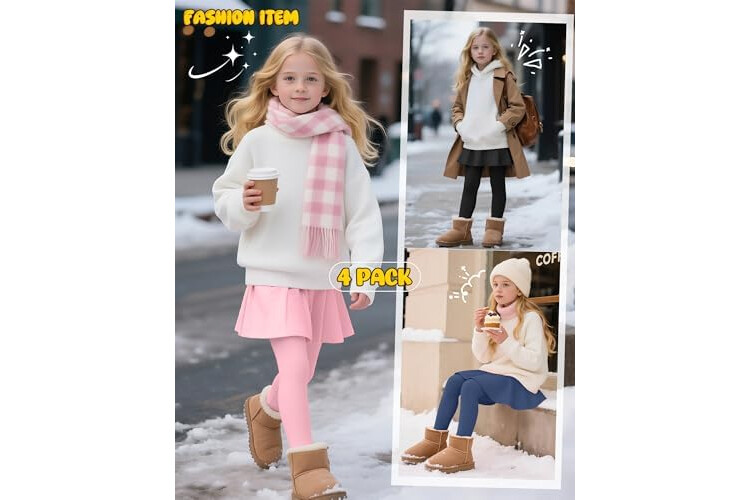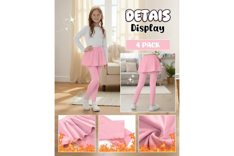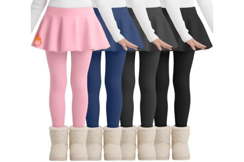 4 Pack Girls Fleece School Uniform Pants Leggings with Ruffle Skirt Kids Thermal Footless Stretch Pants 5-14 Years
