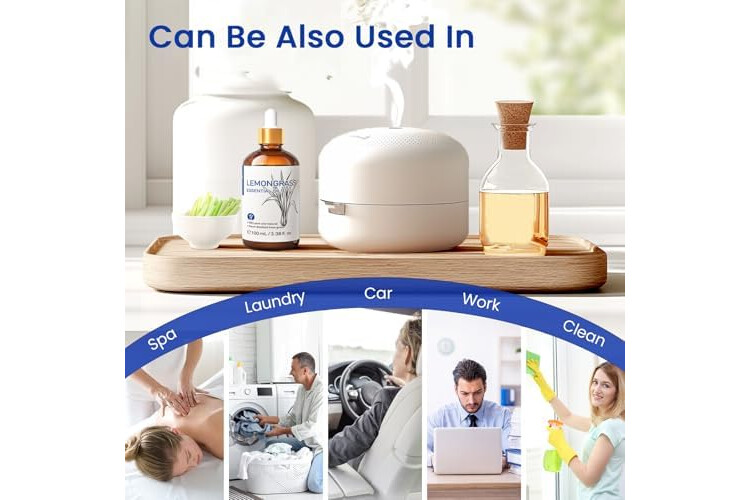 Multiple Usage Scenarios:Add 1-2 drops of lemongrass essential oil to your office diffuser to improve concentration and clarity of thought, help with focus and productivity, commonly used in air freshening, misting, home cleaning, kitchen, shower, bathtub, toilet, sauna, spa treatments, aromatherapy, outdoor spaces, cars, bedrooms, yoga.
