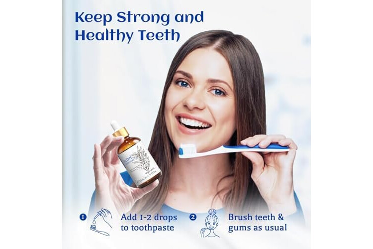 Oral Care: Clove essential oil is a multi-purpose natural healing oil that can not only relieve gums pain, soothe toothache, but also refresh breath, improve oral hygiene, and keep strong and healthy teeth, find relief for sensitive gums