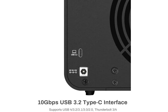 Plug-and-Play Compatibility: The D4-320 USB storage supports 4 individual disks (NO RAID function), and is plug-and-play, eliminating the need for drivers. It is highly compatible with MAC, Windows, and Linux operating systems. The USB Type-C interface supports various computer interfaces, including USB 3.0, USB 3.1, USB 3.2, Thunderbolt 3, and Thunderbolt 4.