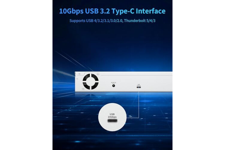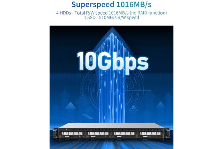 High Speed: The D4-320U HDD enclosure adoptsUSB 3.2 Gen2 protocol for high-speed data transmission up to 10Gbps. With 4 hard drives installed, the read/write speed can reach up to 1,016MB/s (SATA III HDD 8TB x 4). With one hard disk installed, the read speed can reach 510MB/s (SATA III HDD 1TB SSD x 1).
