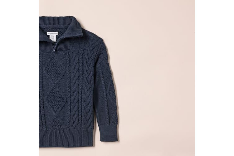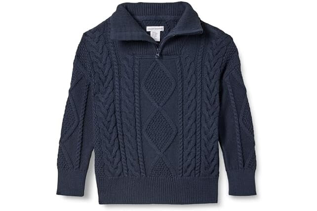 Amazon Essentials Boys and Toddlers' Quarter-Zip Cable-Knit Relaxed-Fit Sweater