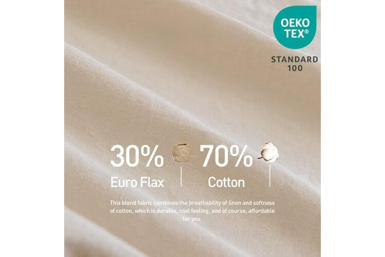 Material Composition: Made from a blend of 30% European flax and 70% cotton; combines the breathability of linen with the softness of cotton; durable and eco-friendly; certified by OEKO-TEX Standard 100 for safe use