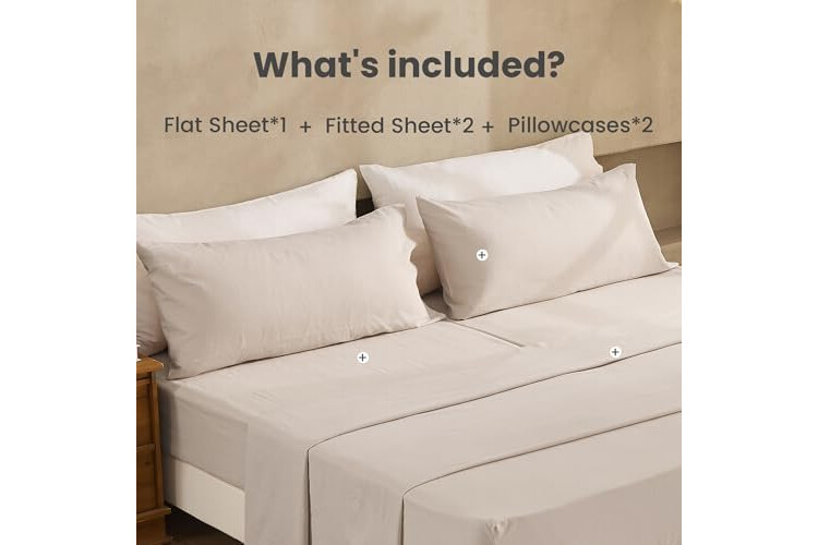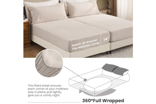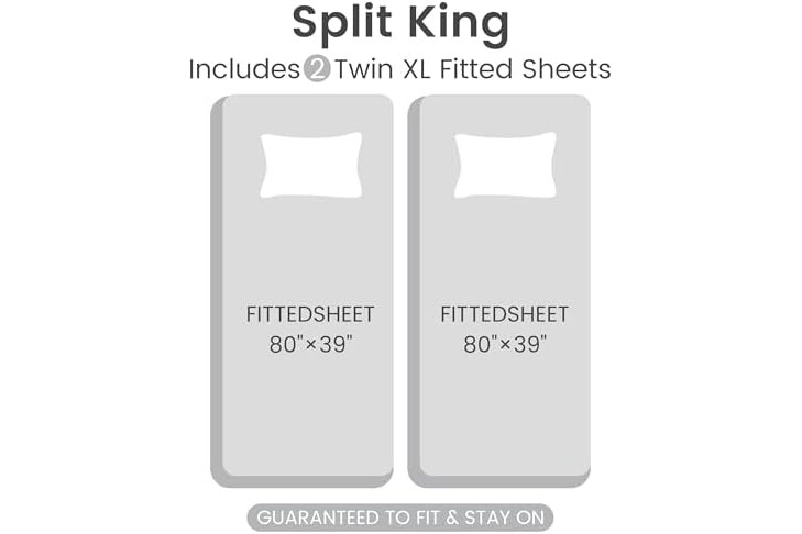 SPLIT KING SIZE — 1 x Flat Sheet: 108"*102", 2 x Fitted Sheets: 39"*80" x 14", 2 x Pillowcases: 20" x 40". Applied in a variety of occasions and uses: Your apartment, children’s room, guest room, gift/ present for your relatives or your friends, also affordable and durable for the inn, homestay and hotel.