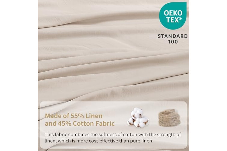 MATERIAL — Made of 55% Euro Flax 45% Cotton Fabric, Premium Quality! 160 GSM (For make the fabric soft, the fabric handling process will cause an uncontrollable shrinkage, so the final GSM will have 5% more or less deviation). Our linen products has been certified according to STANDARD 100 by OEKO-TEX, which is eco-friendly. This fabric combine the breathable of linen and soft of the cotton, which is durable, and of course, affordable for you.