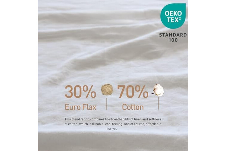 Material Composition: Made from a blend of 30% European flax and 70% cotton; combines the breathability of linen with the softness of cotton; durable and eco-friendly; certified by OEKO-TEX Standard 100 for safe use
