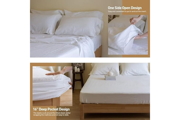 Deep Pocket Fit: Fitted sheet with 16" depth and all-around elastic edge; wraps securely around the mattress to prevent slipping; designed for a snug and stable fit on most mattresses