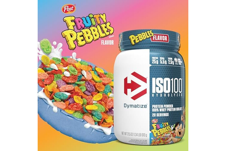 Dymatize x Fruity Pebbles ISO100 Whey Protein Powder Isolate, 25g of Protein, 20 Servings, 5.5g BCAAs, 120 Cal., Gluten Free, 1g Fat, 1g Sugar, 2g Carb (24 Servings)