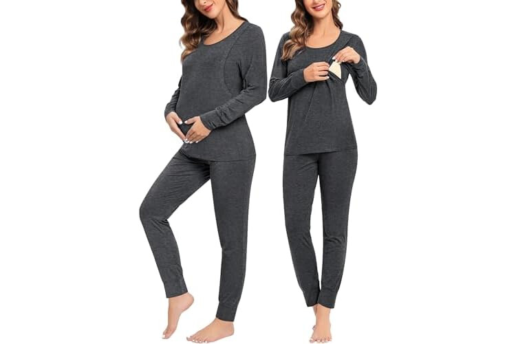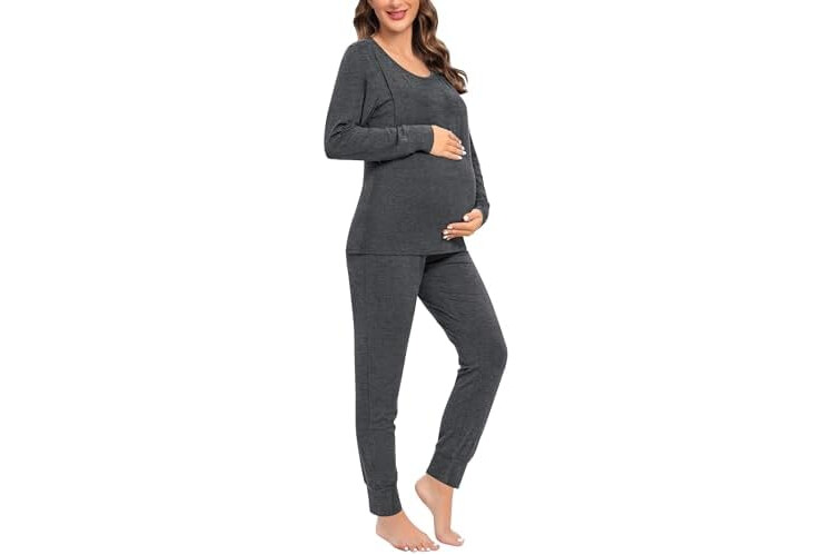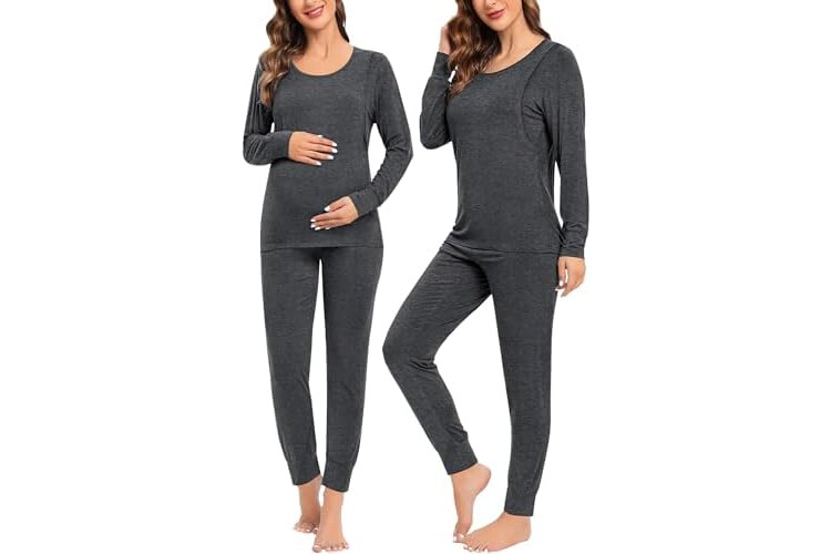 SWOMOG Women Maternity & Nursing Thermal Underwear Set Postpartum Pajamas Breastfeeding Long Sleeve Base Layer Pregnant Pjs