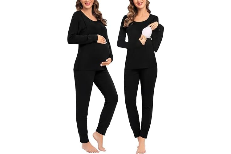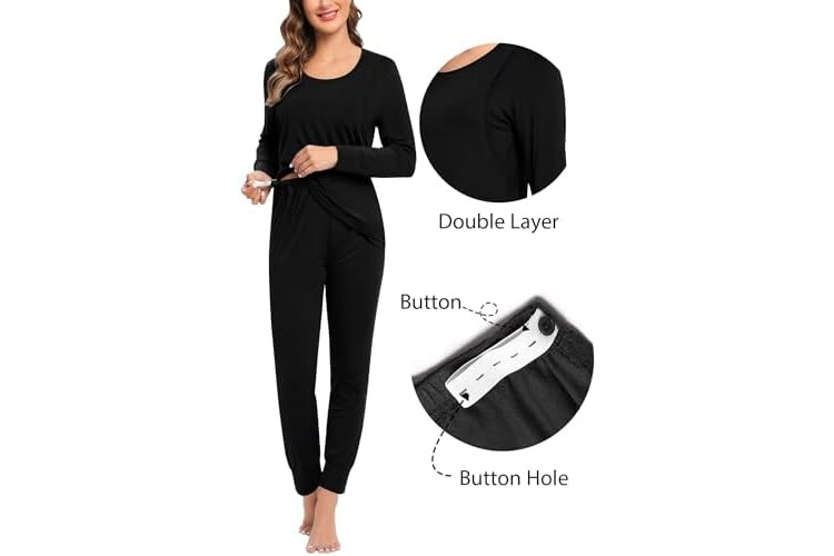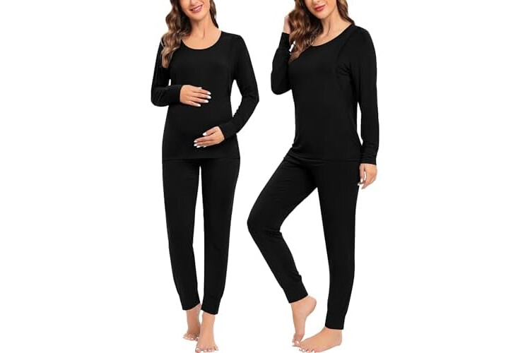 SWOMOG Women Maternity & Nursing Thermal Underwear Set Postpartum Pajamas Breastfeeding Long Sleeve Base Layer Pregnant Pjs