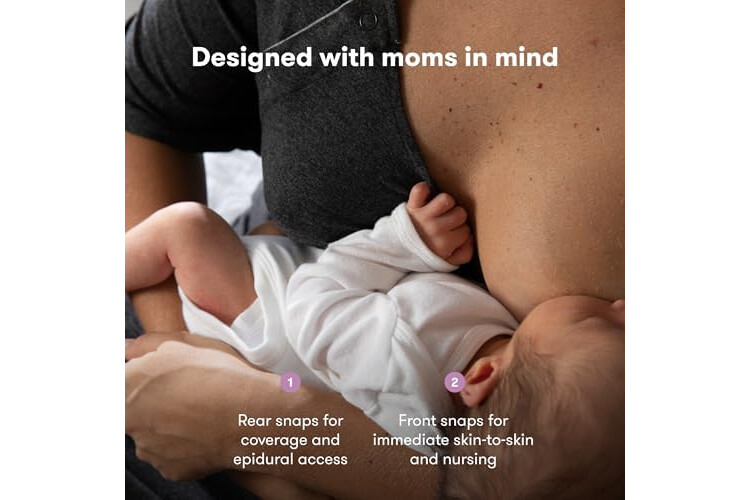 • FOLD-DOWN FRONT PANELS: Snaps to waist for immediate skin-to-skin contact and postpartum nursing access