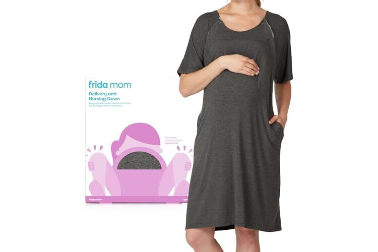 Frida Mom Labor and Delivery Gown for Hospital, Easy-Snap, Tagless Nursing Gown with Skin-to-Skin Access and Full Coverage in The Back