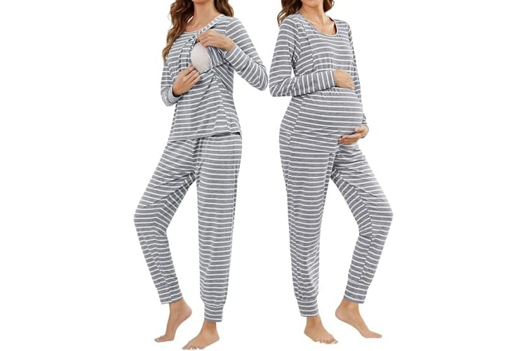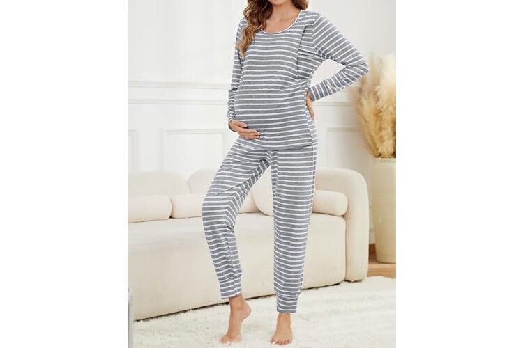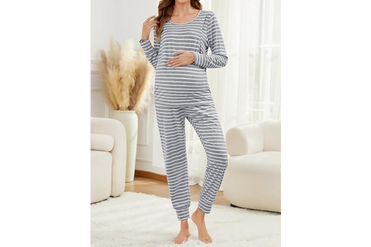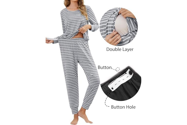 SWOMOG Women Maternity & Nursing Thermal Underwear Set Postpartum Pajamas Breastfeeding Long Sleeve Base Layer Pregnant Pjs