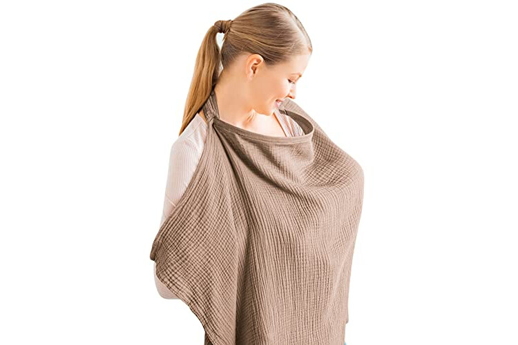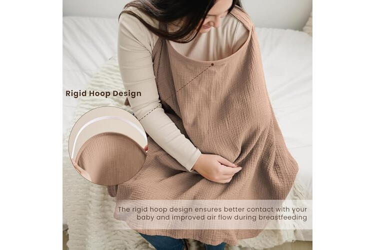 Konssy Muslin Nursing Cover for Baby Breastfeeding, Breathable 100% Cotton Breastfeeding Cover with Rigid Hoop for Mother Nursing Apron, Multi-use Carseat Canopy (Brown)