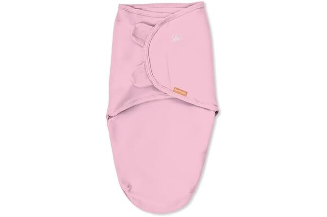 This swaddle is part of Stage 1 in the SwaddleMe Stages of Sleep, made for newborns who aren't rolling over yet and like to be swaddled with their arms in