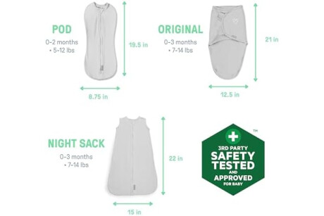 The Comfort Pack helps you find the perfect sleep solution for your baby, with a SwaddleMe Original Swaddle (0-3 months, 7-14 pounds), Pod (0-2 months, 5-12 pounds), and Night Sack Sleeper (0-3 months, 7-14 pounds)