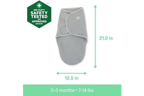Keep your precious baby calm and comforted with the Ingenuity Original Swaddle now featured in our new Muslin material.This swaddle is designed to fit babies from newborn to 3 months, 7-14 pounds, and up to 26 inches long. The easy-to-use swaddle wrap is a 1.0 TOG that is lightweight, breathable, and creates a snug, womb-like feeling for your little one. Simply position the adjustable wings around your baby and press on the super soft hook-and-loop closures to secure. The closures prevent the swaddle from loosening, therefore keeping baby safely secure. The cozy fit of this swaddle helps prevent the startle reflex that can wake baby. The hip-healthy design leaves plenty of room for baby to move. This soft swaddle is made of durable natural fiber (100% cotton muslin) and is machine-washable for easy cleaning. This baby swaddle blanket wrap is part of Stage 1 in the Swaddle Stages of Healthy Sleep, made for newborns who aren't rolling over yet and like to be swaddled with their arms in. When baby starts showing signs of rolling, transition to Stage 2. The Ingenuity Muslin Original Swaddle is a great addition to any baby shower registry!