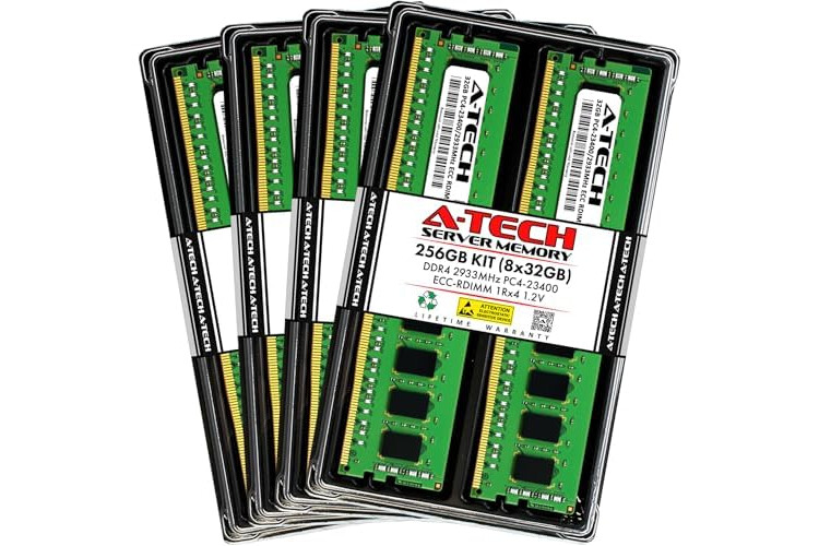 256GB RAM Kit (8 x 32GB Modules); DDR4 DIMM 288 Pin; Speeds up to 2933MHz PC4-23400 (PC4-2933Y)
