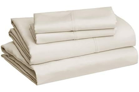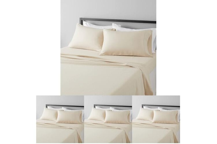 Amazon Basics Lightweight Super Soft Easy Care Comfortable Microfiber 4-Piece Bed Sheet Set with 14-Inch Deep Pockets,King,Beige,Solid,(Pack of 4)