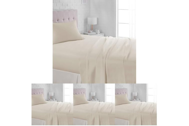 Amazon Basics Lightweight Super Soft Easy Care Wrinkle Free Microfiber 3 Piece Bed Sheet Set with 14-Inch Deep Pockets, Twin, Beige, Solid, Kids, Men & Women Bedding (Pack of 4)