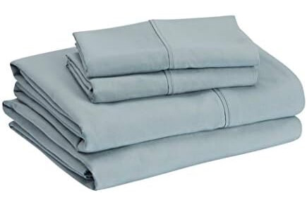 Amazon Basics Lightweight Super Soft Easy Care Microfiber 4 Piece Bed Sheet Set with 14-Inch Deep Pockets,King,Spa Blue,Solid,(Pack of 4)
