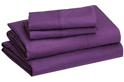 Amazon Basics Lightweight Super Soft Easy Care Microfiber 4 Piece Bed Sheets Set with 14-Inch Deep Pockets,Full,Plum,Solid,(Pack of 4)