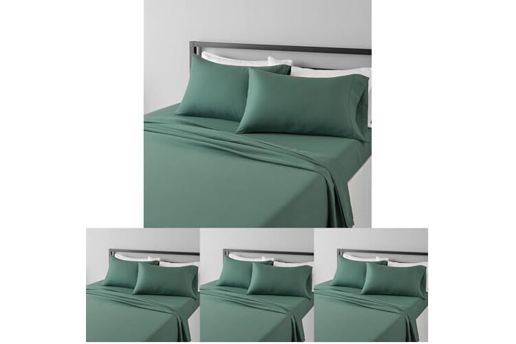 Amazon Basics Lightweight Super Soft, Wrinkle-Free Easy Care Breathable Microfiber 4-Piece Bed Sheet Set with 14-Inch Deep Pockets, Full, Emerald Green, Solid (Pack of 4)