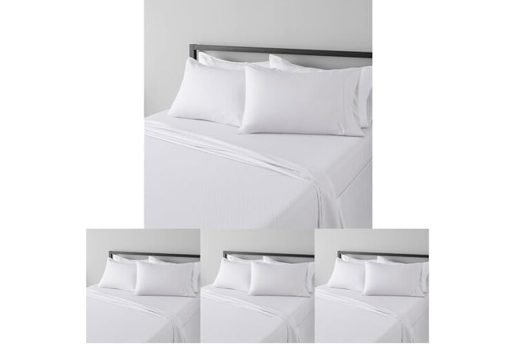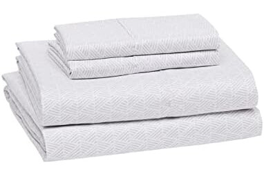Amazon Basics Lightweight Super Soft,Comfortable Easy Care Microfiber 4 Piece Bed Sheet Set with 14-Inch Deep Pockets,Queen,Gray Crosshatch,Printed,(Pack of 4)
