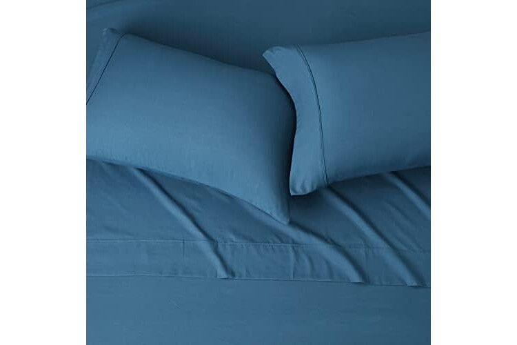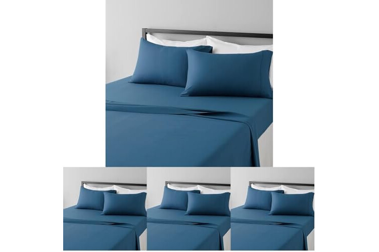 Amazon Basics Lightweight Super Soft Easy Care,Ultra Comfortable Microfiber 4-Piece Bed Sheet Set with 14-Inch Deep Pockets,Queen,Dark Teal,Solid,(Pack of 4)