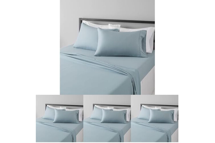 Amazon Basics Lightweight Super Soft, Wrinkle-Free Easy Care Microfiber 4 Piece Bed Sheet Set with 14-Inch Deep Pockets, Queen, Spa Blue, Solid (Pack of 4)