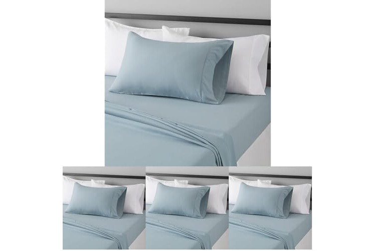 Amazon Basics Lightweight Super Soft Easy Care Wrinkle Free Microfiber 3 Piece Bed Sheet Set with 14-Inch Deep Pockets,Twin,Spa Blue,Solid,Kids,Men & Women Bedding,(Pack of 4)