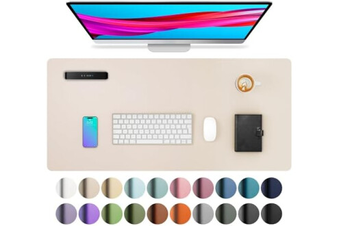 Aothia Large PU Leather Desk Pad Protector – Non-Slip Mouse Pad & Writing Mat for Office/Home, Waterproof, Easy to Clean (23.6" x 13.7", Eggshell)
