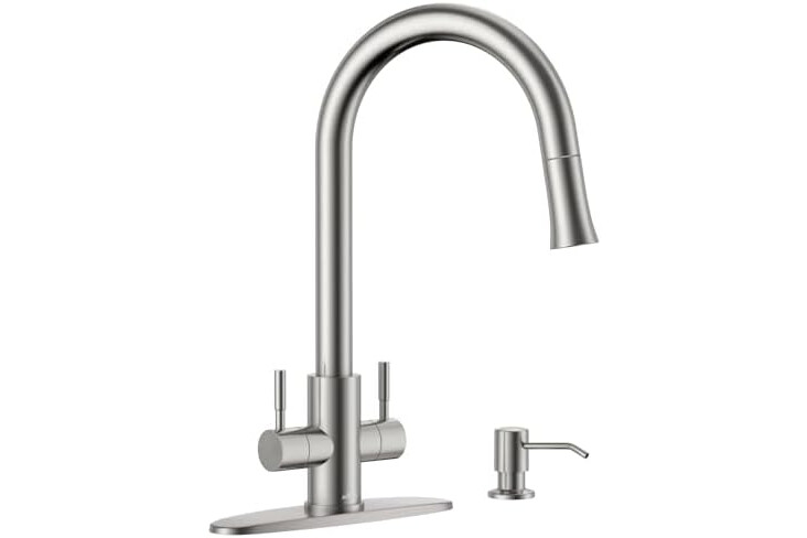 Precise Dual-Handle Temperature Control: Enjoy superior functionality with dual handles for precise hot/cold water control and a high-arch spout that accommodates large pots and pans effortlessly