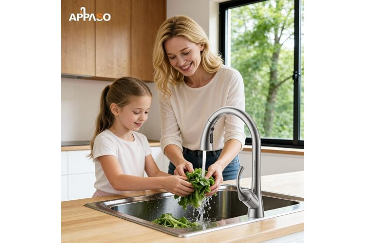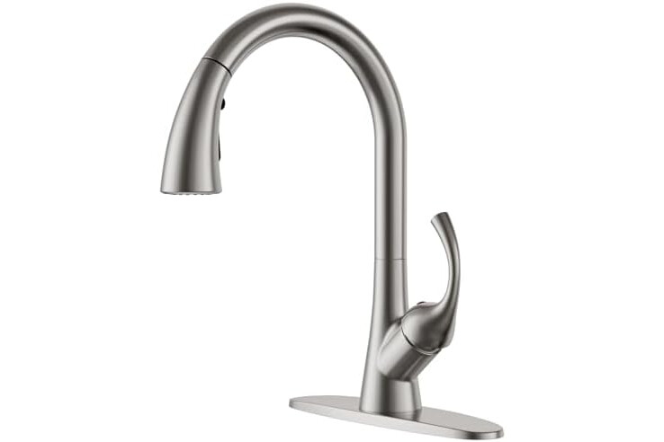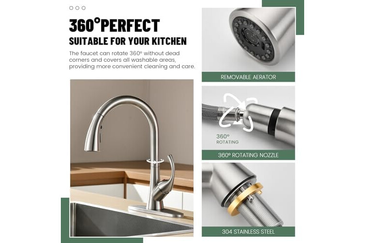 [Elegant Design and Premium Appeal] Features a sophisticated brushed nickel finish that resists fingerprints and water spots, ensuring your kitchen faucet maintains its sleek, modern look with minimal effort. It adds a touch of timeless elegance to any kitchen decor