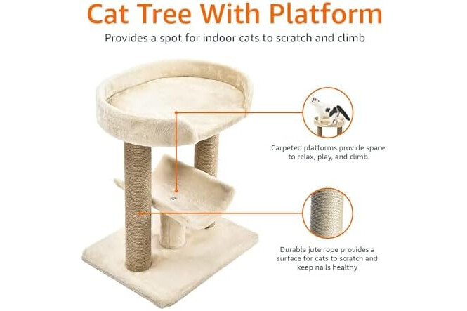Amazon Basics Multi- Platform Cat Tree with Scratching Post for Indoor Cats up to 25lbs, 18 x 14 x 22 Inches, Beige