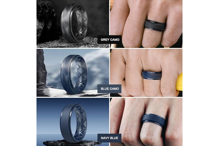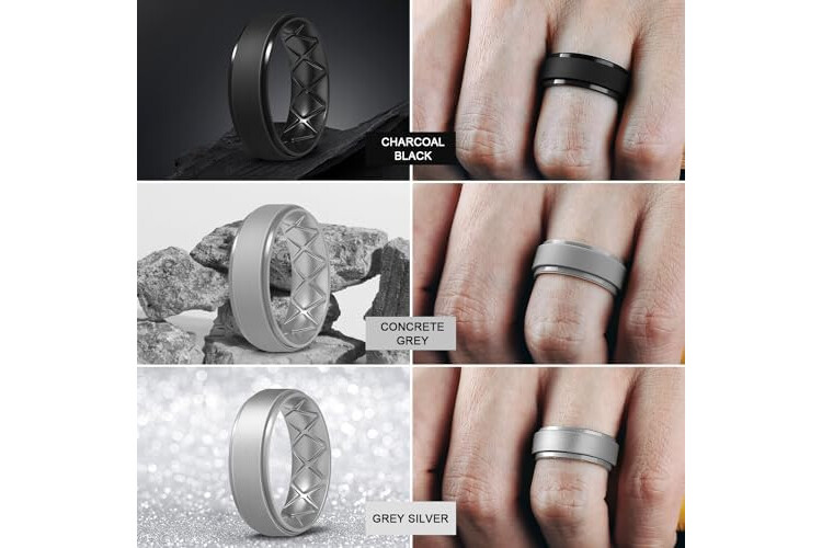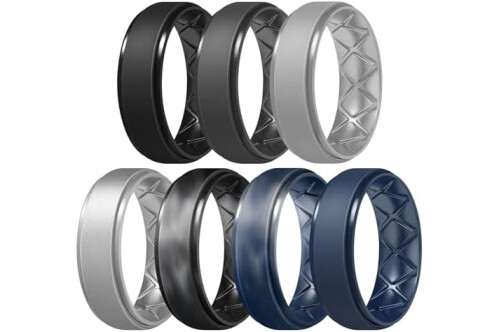 Egnaro Men's Rings 8.5mm Wide-2mm Thick Inner Arc Ergonomic Breathable Rubber Wedding bands-Hypoallergenic for Gym/Outdoor/Gift((1-7 Variety Pack with Half Size)