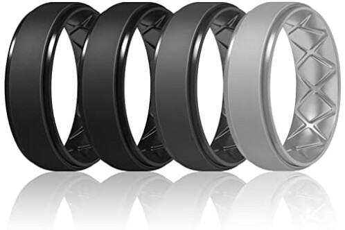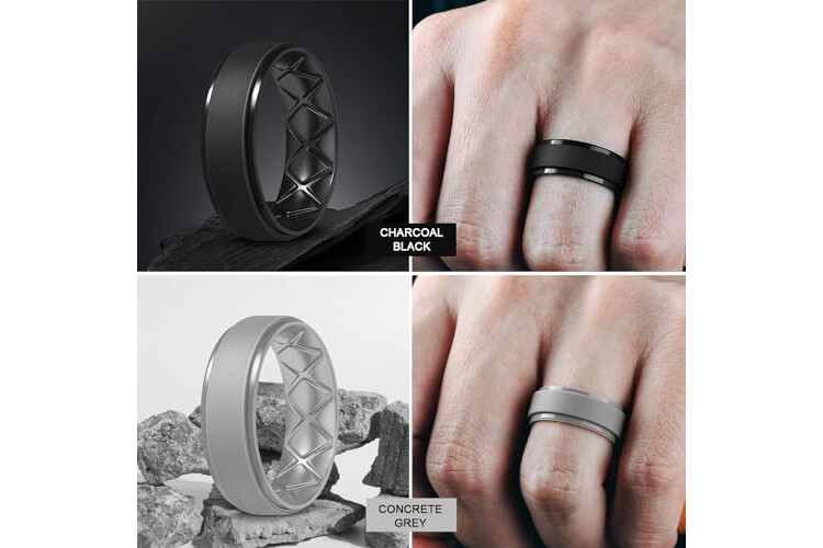 Egnaro Men's Rings 8.5mm Wide-2mm Thick Inner Arc Ergonomic Breathable Rubber Wedding bands-Hypoallergenic for Gym/Outdoor/Gift((1-7 Variety Pack with Half Size)