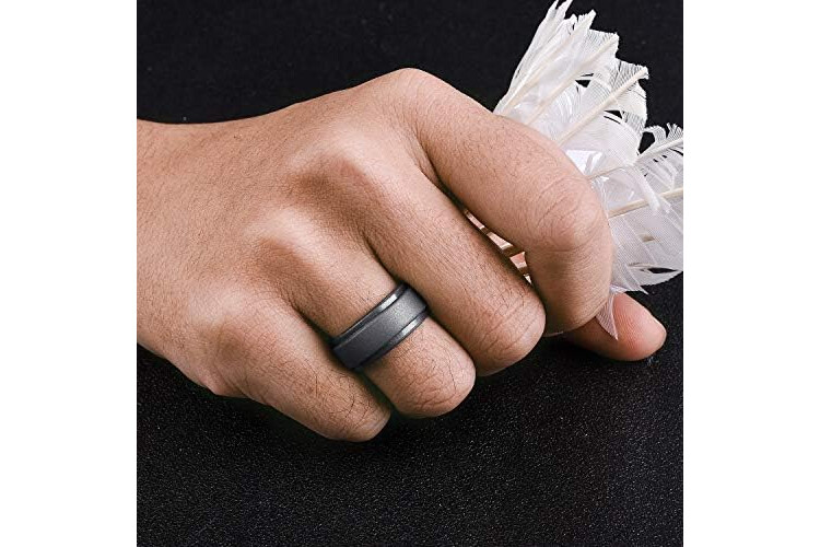 Egnaro Men's Rings 8.5mm Wide-2mm Thick Inner Arc Ergonomic Breathable Rubber Wedding bands-Hypoallergenic for Gym/Outdoor/Gift((1-7 Variety Pack with Half Size)