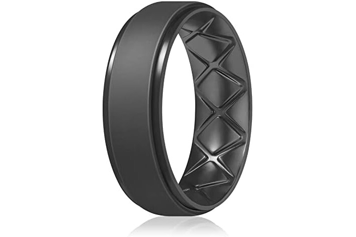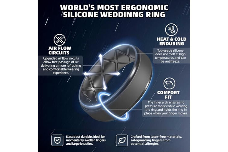 Egnaro Men's Rings 8.5mm Wide-2mm Thick Inner Arc Ergonomic Breathable Rubber Wedding bands-Hypoallergenic for Gym/Outdoor/Gift((1-7 Variety Pack with Half Size)