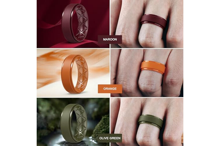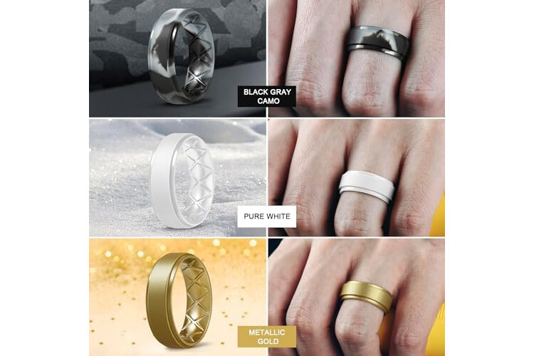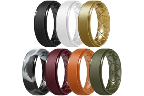 Egnaro Men's Rings 8.5mm Wide-2mm Thick Inner Arc Ergonomic Breathable Rubber Wedding bands-Hypoallergenic for Gym/Outdoor/Gift((1-7 Variety Pack with Half Size)