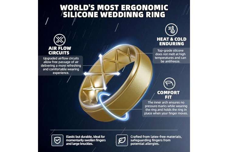 Egnaro Men's Rings 8.5mm Wide-2mm Thick Inner Arc Ergonomic Breathable Rubber Wedding bands-Hypoallergenic for Gym/Outdoor/Gift((1-7 Variety Pack with Half Size)
